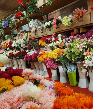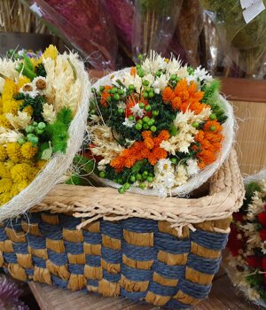 Fiori artificiali ed essiccati, cesterie.